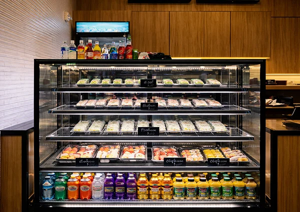 Space-efficient refrigeration and showcases designed for ingredient freshness and product presentation.